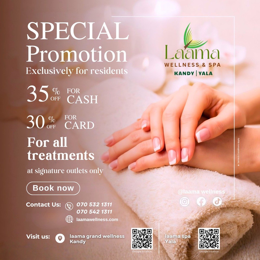 Step into a refined wellness retreat and feel Laama Grand Wellness’s signature therapies echo through the calm, culture, and quiet elegance of Kandy.